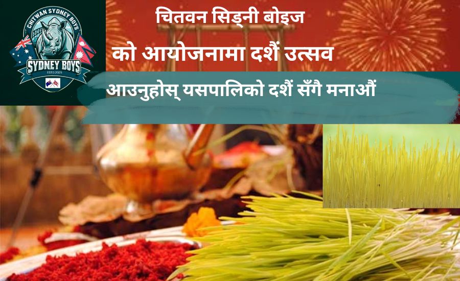 सिड्नी, अष्ट्रेलिया – सिड्नीमा रहेका नेपाली समुदायलाई लक्षित गर्दै चितवन सिड्नी बोइज ले यस वर्ष विशेष दशैं उत्सव आयोजना गर्ने भएको छ। नेपालीहरूको सबैभन्दा ठूलो पर्व दशैंलाई आफ्नो घरदेखि टाढा भए पनि घरझैँ अनुभूति दिलाउने उद्देश्यका साथ यो कार्यक्रम गर्न लागिएको आयोजकहरूले जनाएका छन्।